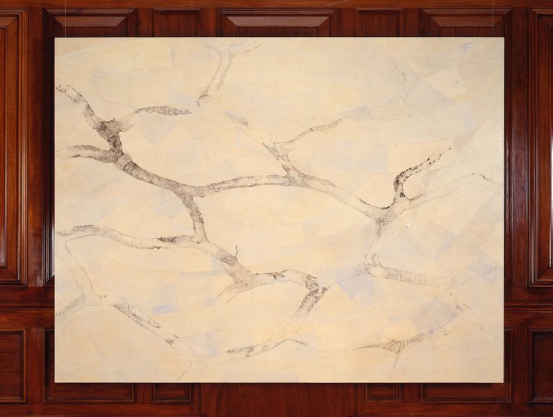 Gallagher's recent works display a particular fascination with the history of the islands of Cape Verde and their volcanic landscape that was for centuries the scene of trade in salt and slaves. Gallagher refers to the gathering of salt, the 'white gold' upon which the Cape Verde communities were built. Her works are infused with a sense of alchemy. They reveal an interest in transformation, the process by which those who were forced to dig for salt and load ships slowly adopted the guise of their oppressors; a process whereby slaves, now proficient sailors and expert navigators, rose to become captains of weathered trading vessels. Multiple strands of meaning are woven into Gallagher's work, fusing this specific historical narrative with a personal perspective based on the artist's findings. This sense of metamorphosis extends to the techniques that Gallagher harnesses in her work. Though described as paintings, Gallagher’s works are built up in layers of varied materials, including pen, pencil, paint, collaged paper and newsprint, oil, and plasticine. Her technique of production is intensely physical; the works are created over painstaking periods of time, their materials scored, scratched and gouged.